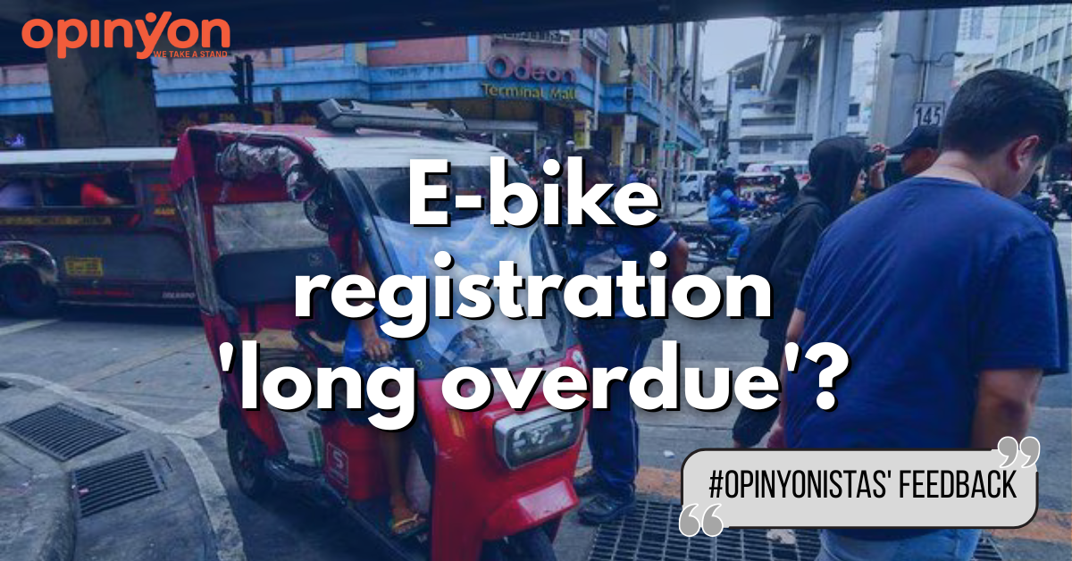 "Honestly, I think mandatory registration for e-bikes and e-trikes might really be necessary at this point. A lot more people are using them now, and having proper registration could help with safety and accountability. But at the same time, many of us only use our e-bikes for short trips — like quick errands around town — so the rules should still be fair and practical for everyday users." - Mel Ig, on the #OpinYonistangLagunense poll posted last November 26 regarding the registration of e-bicycles and e-tricycles