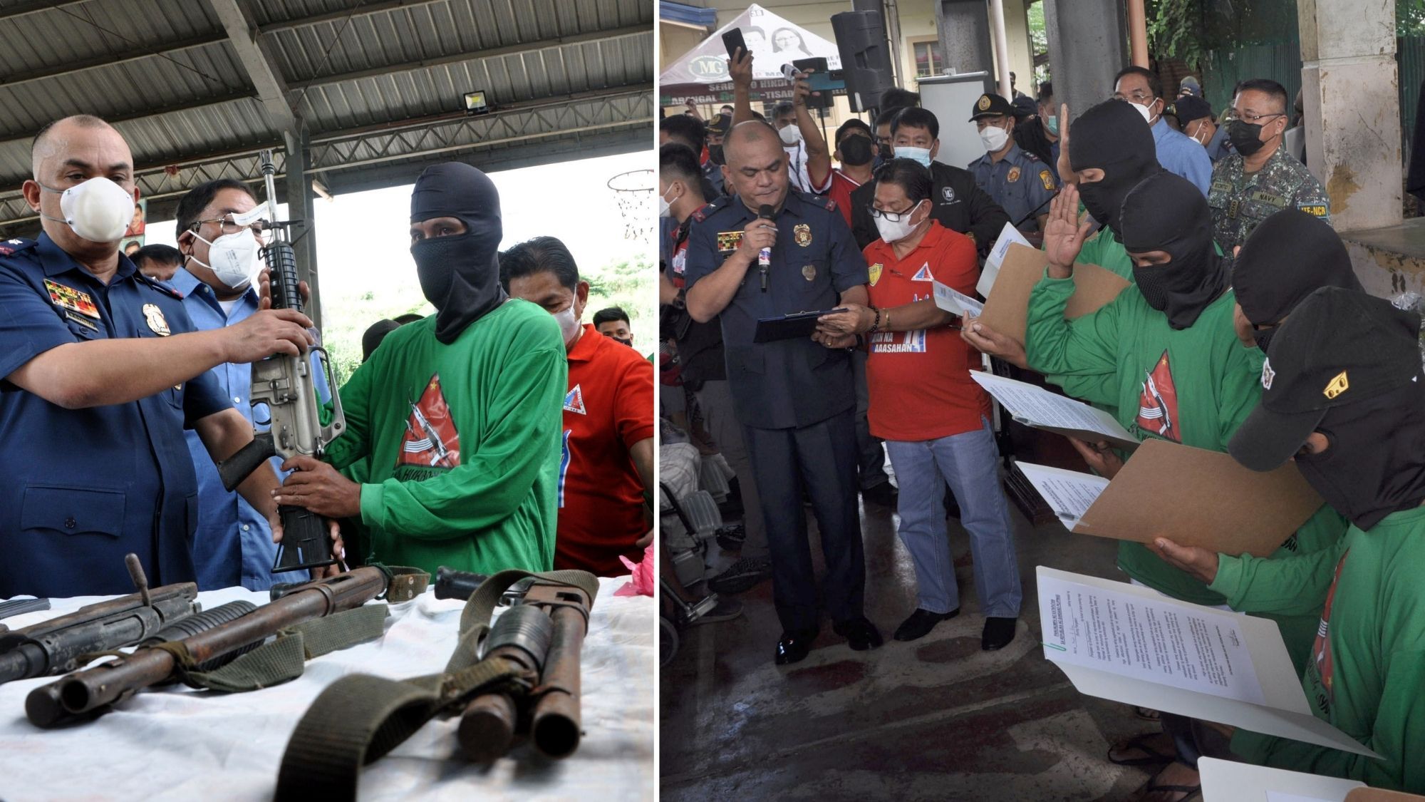 Ten alleged New People's Army members surrendered and laid down their weapons in a symbolic ceremony during the Serbisyong Caravan by National Capital Region Police Office (NCRPO) led by NCRPO Acting Regional Director PBGen Jonnel C Estomo, together with Joint Regional Task Force JRTF-NCR ELCAC, in connection with the 50th Anniversary of Martial Law held at Lupang Pangako in Brgy. Payatas in Quezon City today.